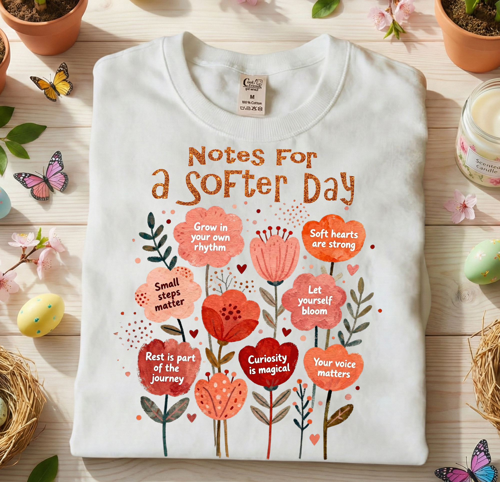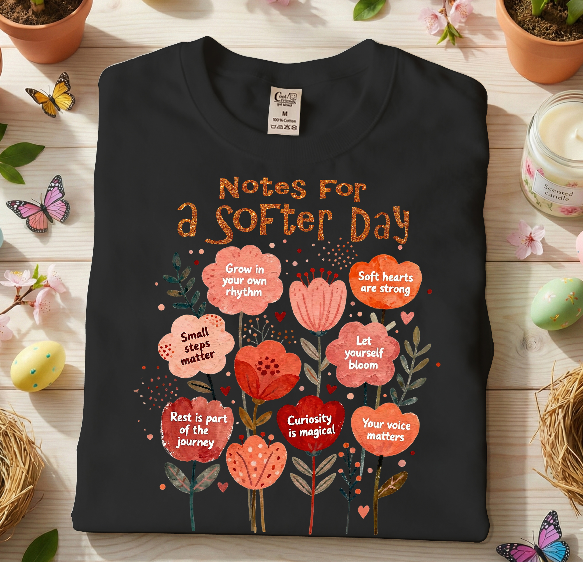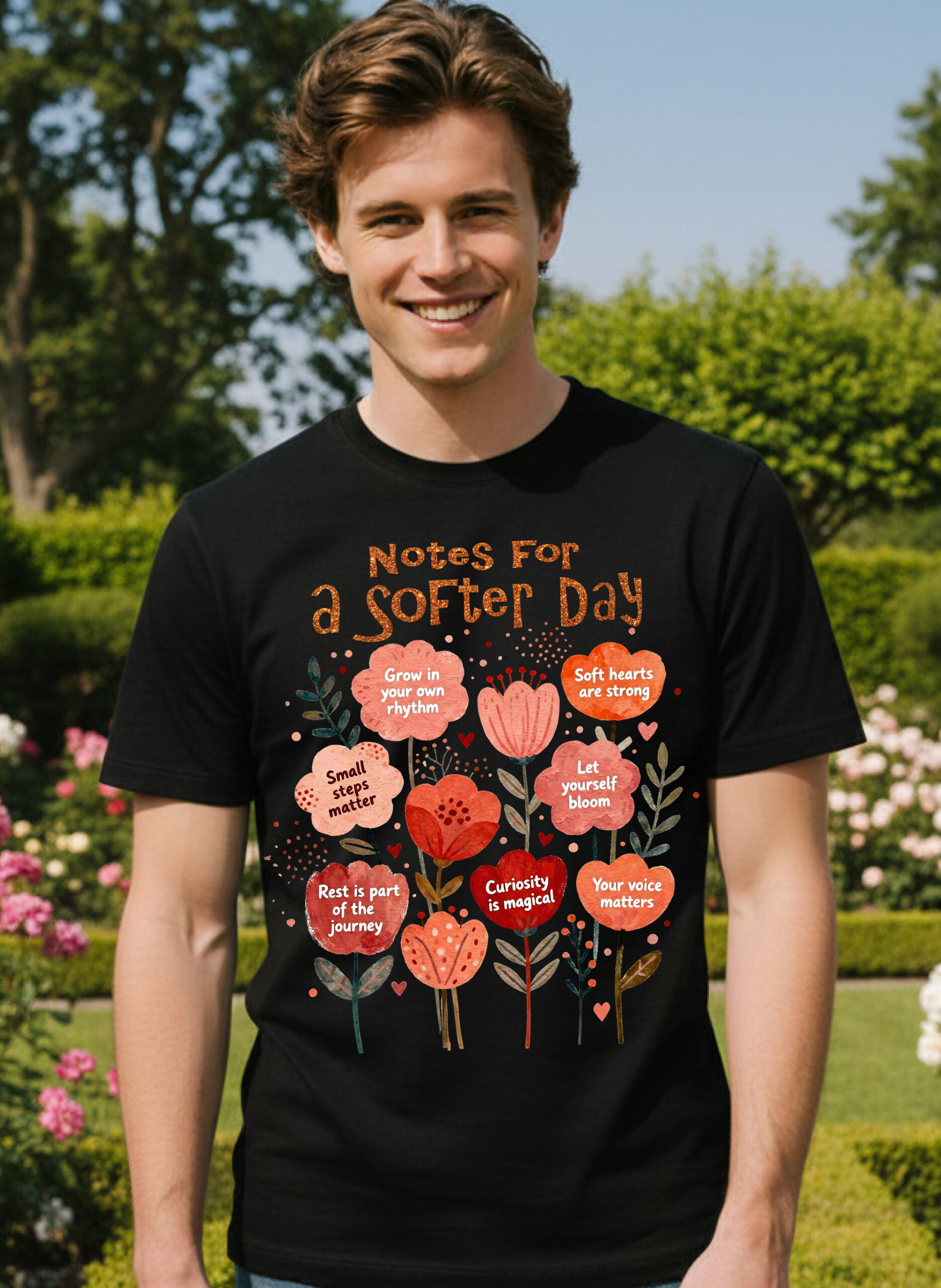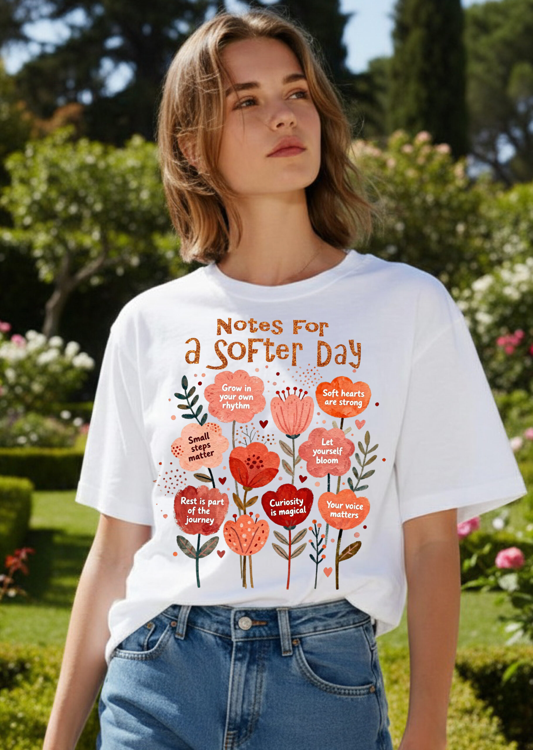100% Cotton T-Shirt by Cool! Friends -Bloom in Your Rhythm Floral Quote, Unisex Design for Both Women and Men